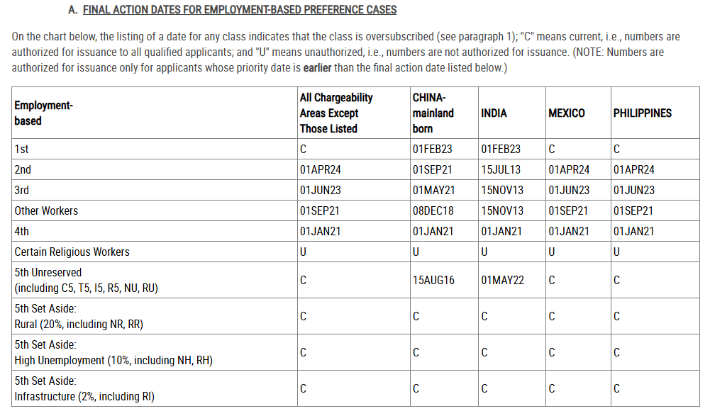 • 表A(最终裁定日):也就是大家常说的“绿灯”。如果你的排队号(优先日)早于表上的日期,恭喜你,移民局可以给你发绿卡了。
